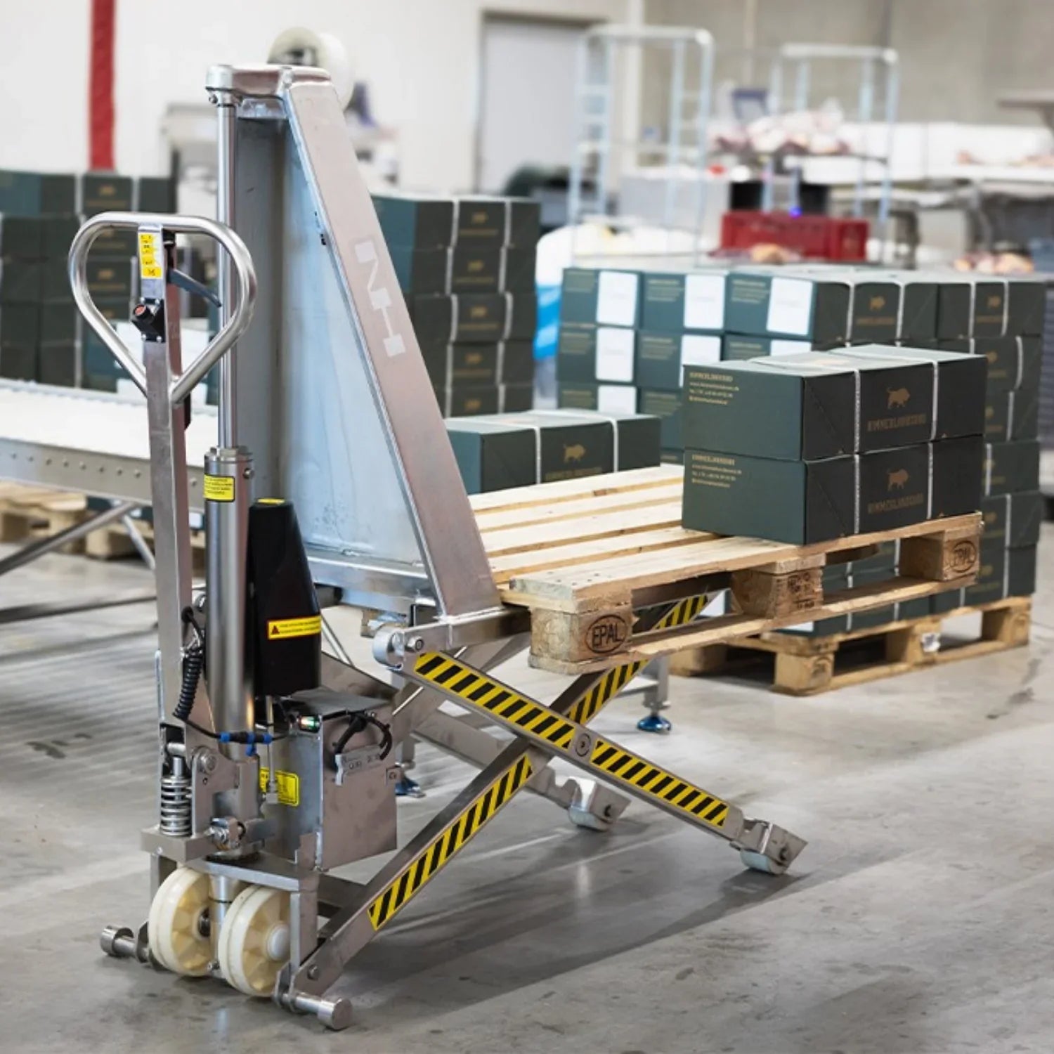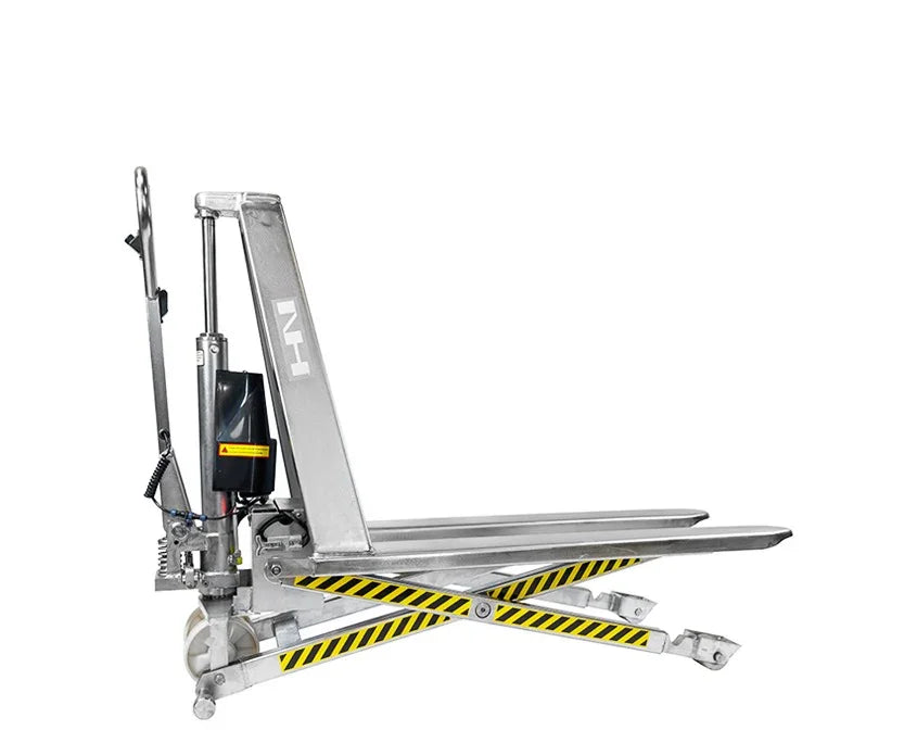 Denne rustfri højtløftende palleløfter er udviklet til miljøer, hvor hygiejne, rengøring og ergonomi er en fast del af arbejdet. Konstruktionen i rustfrit stål gør den velegnet til fødevareproduktion, pharma og andre områder med høje krav til renlighed og modstandsdygtighed over for fugt og rengøringsmidler.