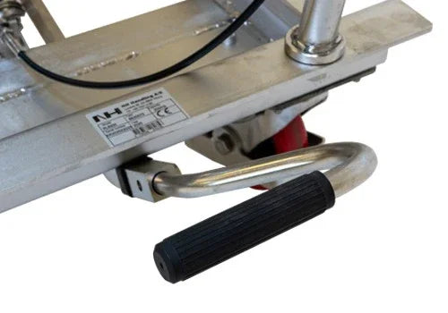 Løftevognen hæves ved hjælp af fodpedal, hvilket gør det nemt at justere arbejdshøjden uden belastning af ryg og skuldre. Det giver bedre arbejdsstillinger ved håndtering, pakning og klargøring af varer og bidrager til et sundere arbejdsmiljø.